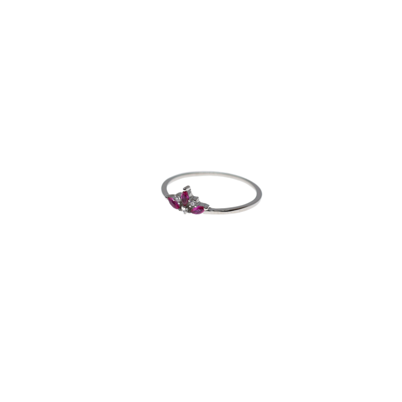 Anillo fino con detalle central de circonitas granate.