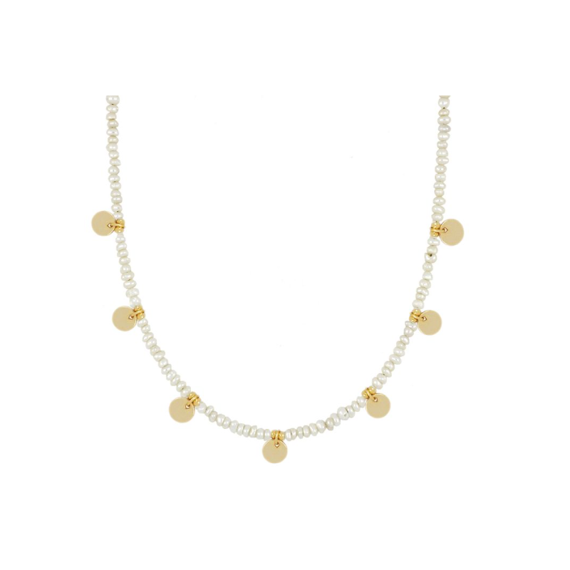 Gargantilla perlas con 7 chapas de 6mm.