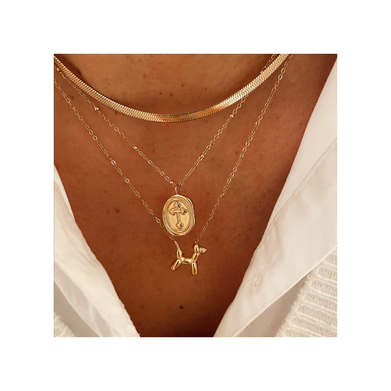 Gargantilla cadena bolitas fina con charm globo perrito.
