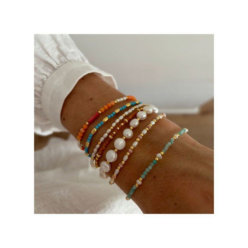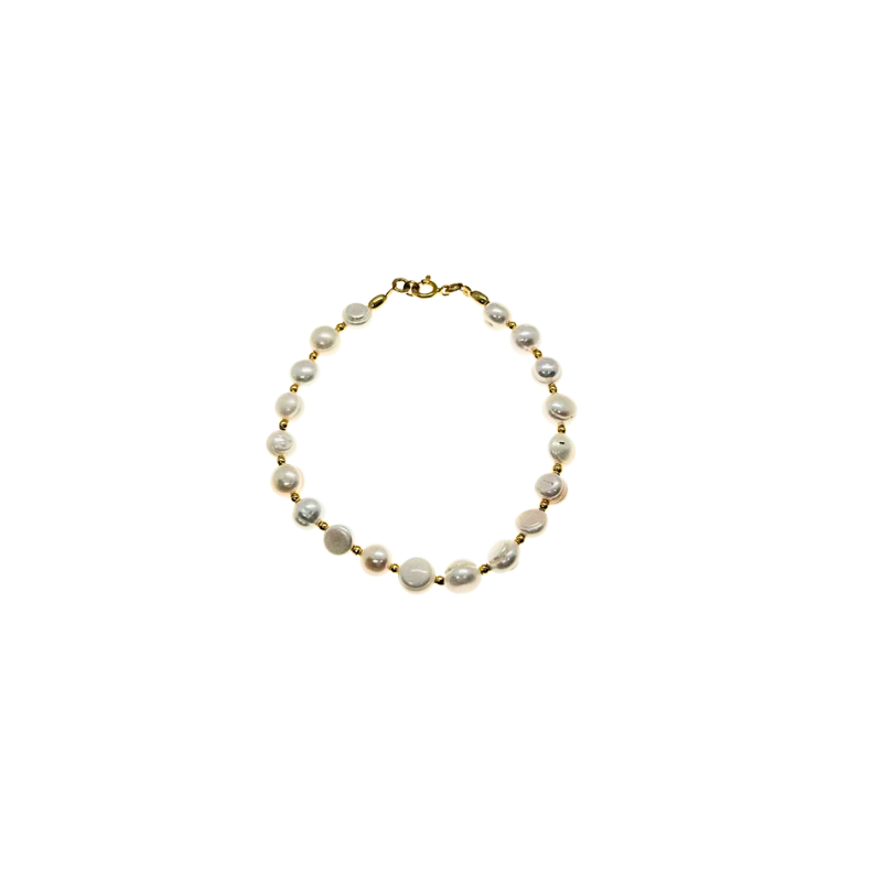 Pulsera de perlas naturales y hematita dorada. Handmade.