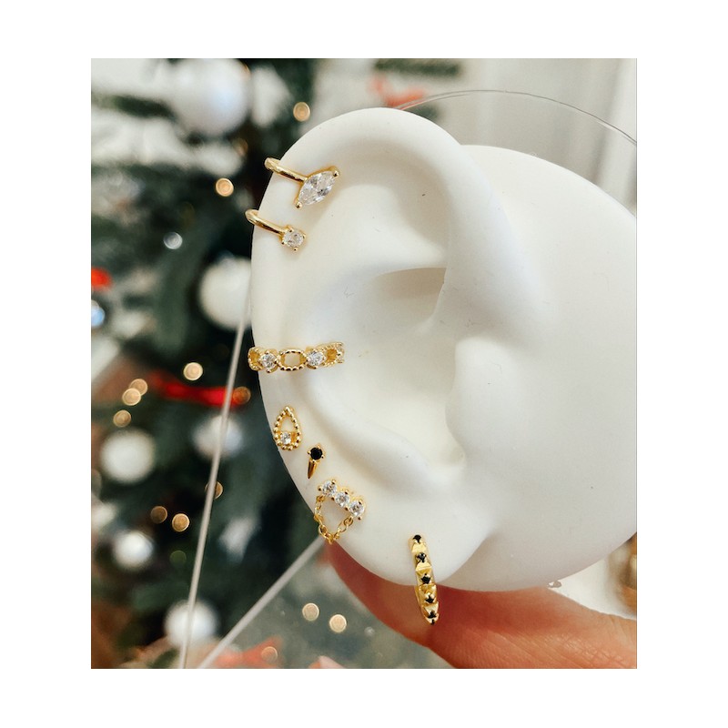 Pendiente mini con circonita blanca y cadena.