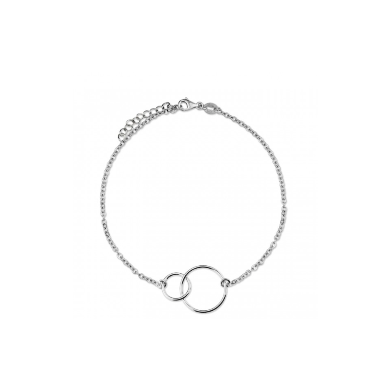 Pulsera cadena fina con dos aros entrelazados en el centro