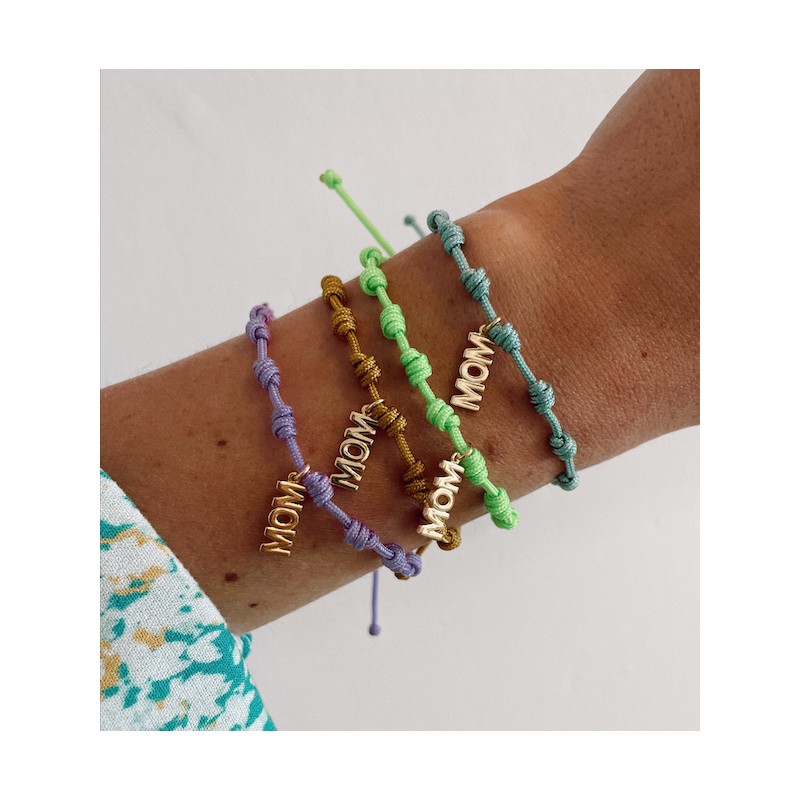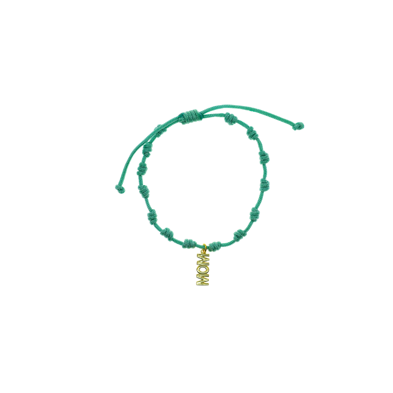 Pulsera nudos ajustable con charm MOM en Plata de Ley bañada en oro de 18Kts.