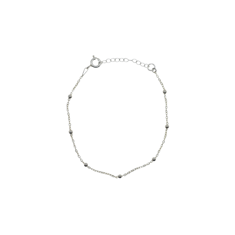 Pulsera en Plata de Ley, de cadena fina con bolitas 2,5mm aprox.